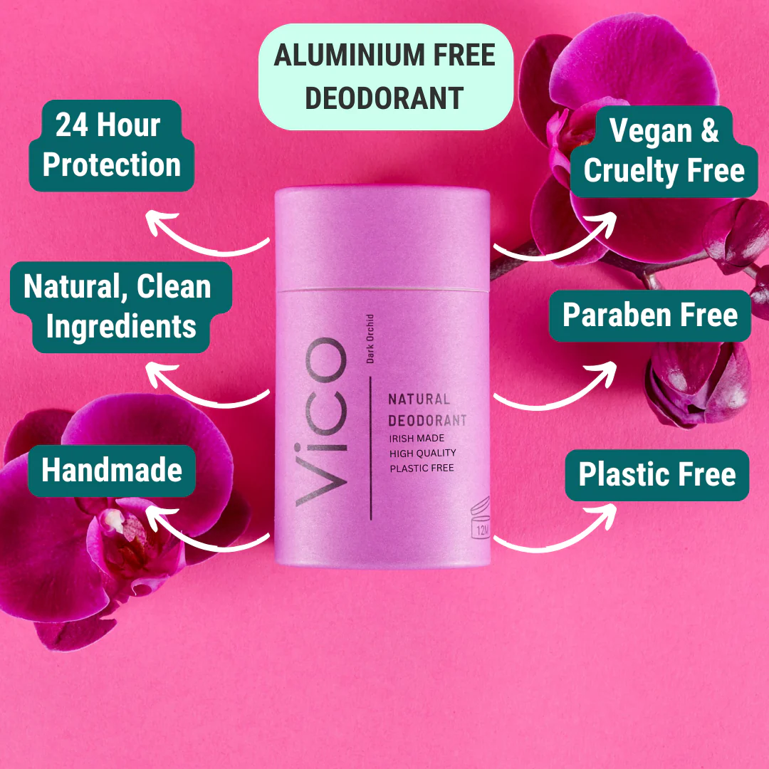 Dark Orchid: A scent that combines the exotic allure of rare orchids with a velvety touch of dark florals and spice. This is our one of our more subtle scents, for those who don’t like their deodorant smelling too strong.